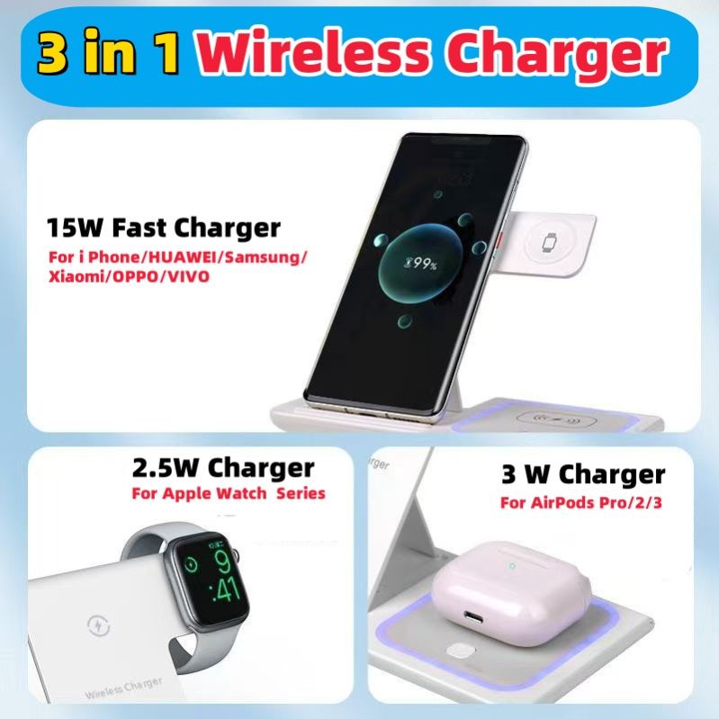 3 in 1 Mobile Quick Charging Wireless Charger for Mobile Phone