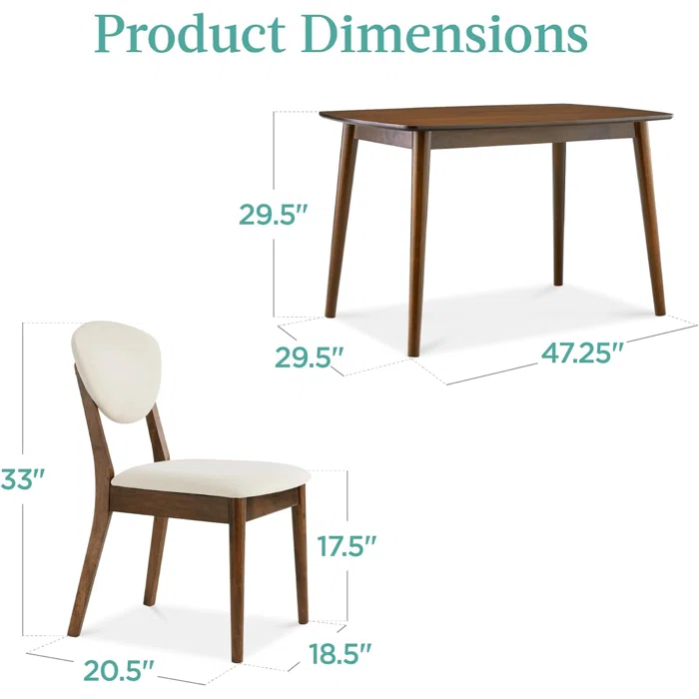 This stylish set is ideal for dining areas, kitchen, and dining areas. It seats up to 4 people around a rectangular table, perfect for family meals, meals with friends and more.